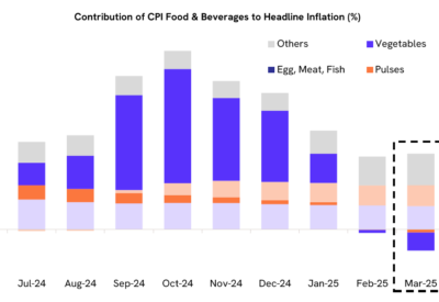 India’s Consumer Price Index (CPI) inflation eased to 3.16% YoY in April 2025 from 3.34% in the previous month. The decline in headline inflation was driven by a fall in food inflation to 2.1% YoY in April 2025 from 2.9%…