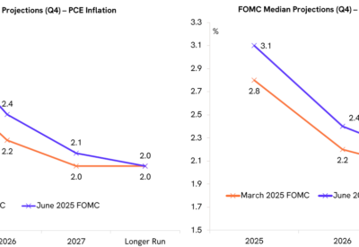 The US Federal Open Market Committee (FOMC) held the federal funds rate steady at 4.25–4.50% at its June 2025 meeting. The FOMC revised its growth projections downward. The median forecast for Q4 2025 was lowered to 1.4% in the June…