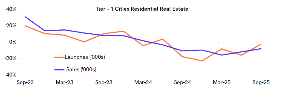 - Central Government’s capex has witnessed a strong growth of 32% YoY in FYTD October 2025. However, budgeted FY26 capex growth of 7% YoY implies a slowdown for the rest of the fiscal year. In addition, higher social and welfare spending is likely to cap states’ capex growth.