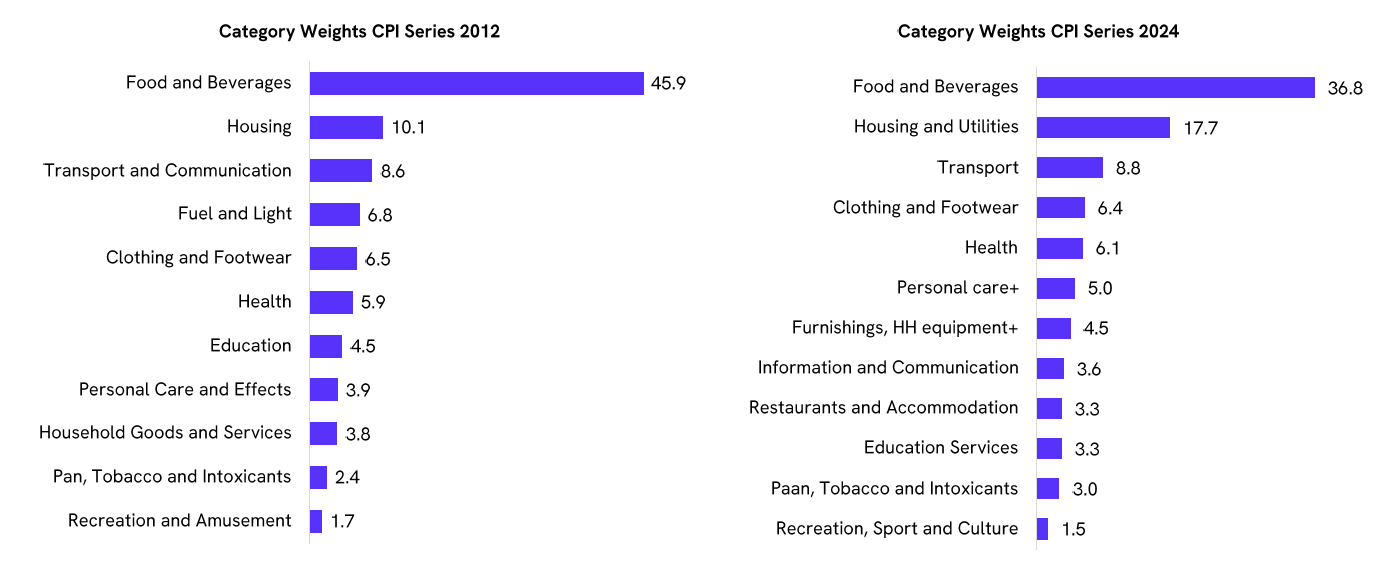 In January 2026, inflation remained moderate across most major categories, except for the personal care+ segment, which was lifted by rising precious metal prices. In food, vegetable & pulses prices continued to register deflation. Onion and potato prices recorded a sharp year-on-year decline, while tomato prices posted a strong increase. Other food categories, such as meat, fish, fruits, and oils, witnessed elevated inflation.
