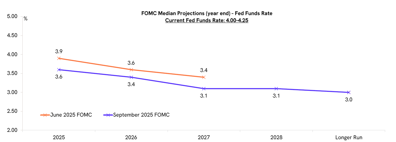 The US Federal Open Market Committee (FOMC) lowered the federal funds rate by 25 bps to 4.00–4.25% at its September 2025 meeting.
